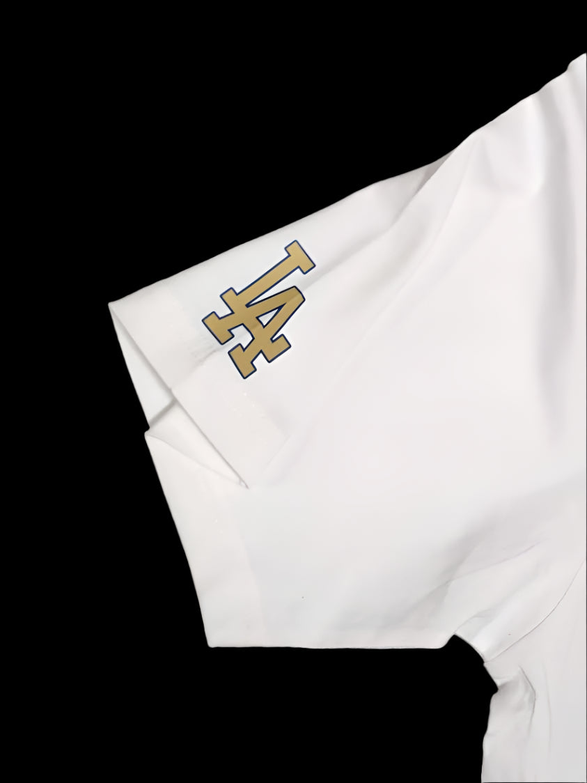 Esta camisa dorada y azul de los Dodgers, confeccionada en algodón 100% suave, es imprescindible para los fanáticos de los Dodgers. No solo es cómodo de llevar, sino que también te permite mostrar con orgullo tu apoyo al equipo y llevar un pedazo de historia. Perfecto para cualquier aficionado o coleccionista. Con el momento histórico en el que Freddie Freeman conectó un grand slam.