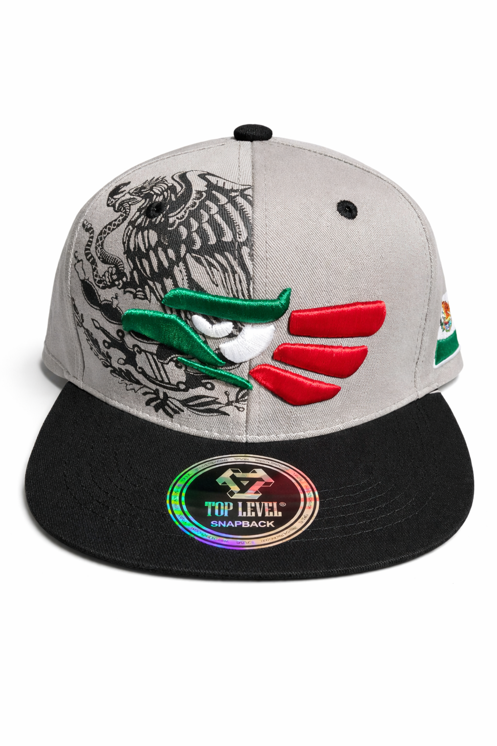 Representa tu orgullo con estilo con esta gorra snapback premium Top Level México. Presenta una corona gris con arte detallado del águila azteca, bordado elevado en verde, blanco y rojo, y una visera negra elegante que la hace resaltar. Incluye “México” bordado en la parte trasera y un parche de la bandera mexicana en el costado. Calidad, cultura y estilo urbano en una sola gorra. Ajuste estructurado, visera plana y broche snapback ajustable para máxima comodidad. Perfecta para uso diario, eventos.